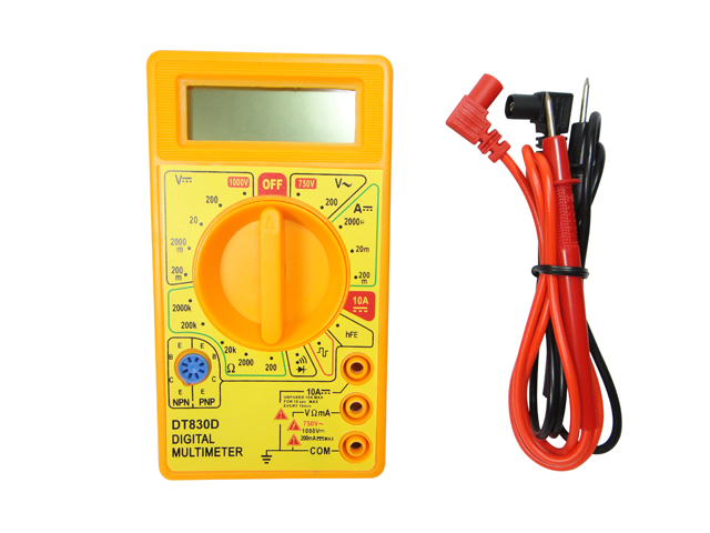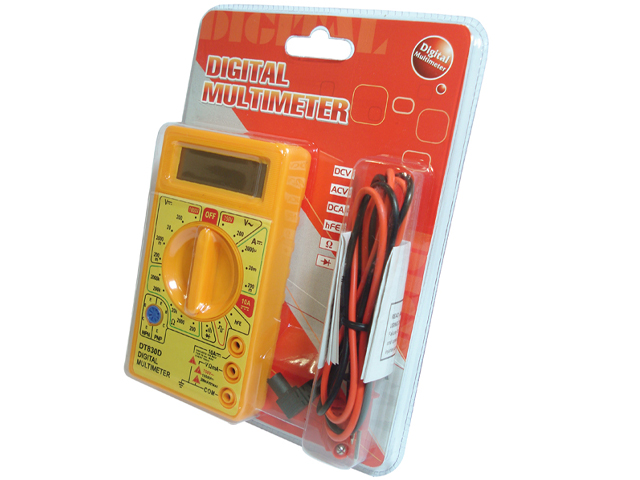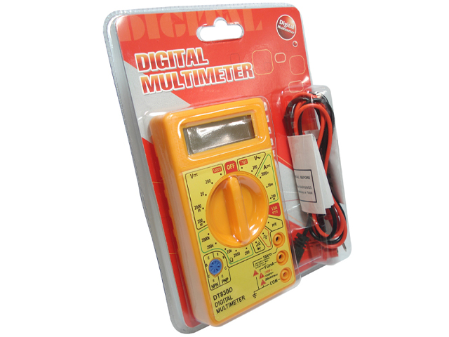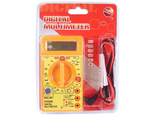 Multímetro Digital, portátil, display LCD com 03 dígitos, para medidas de tensão DC e AC, corrente DC, resistência, testes em diodo e transistor
