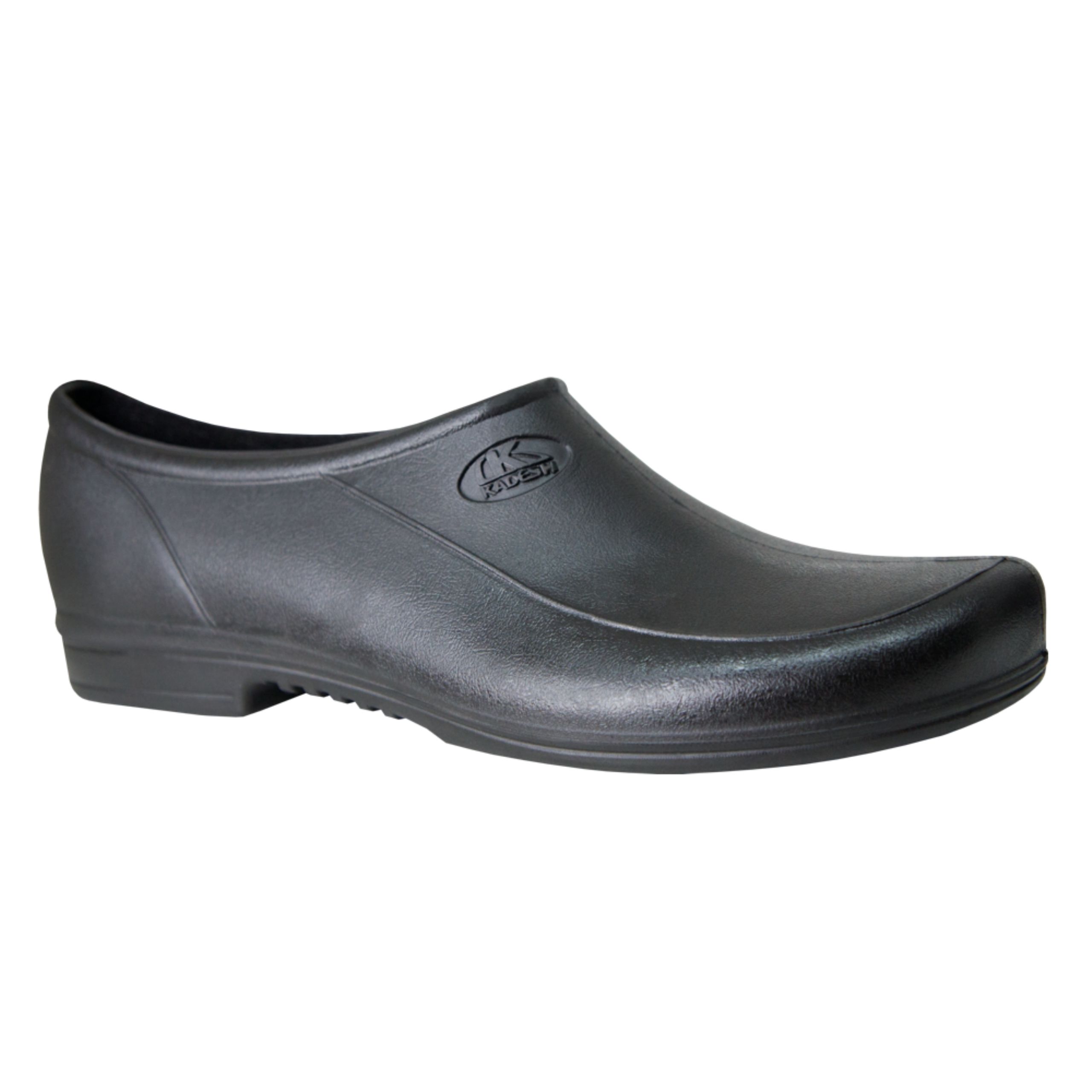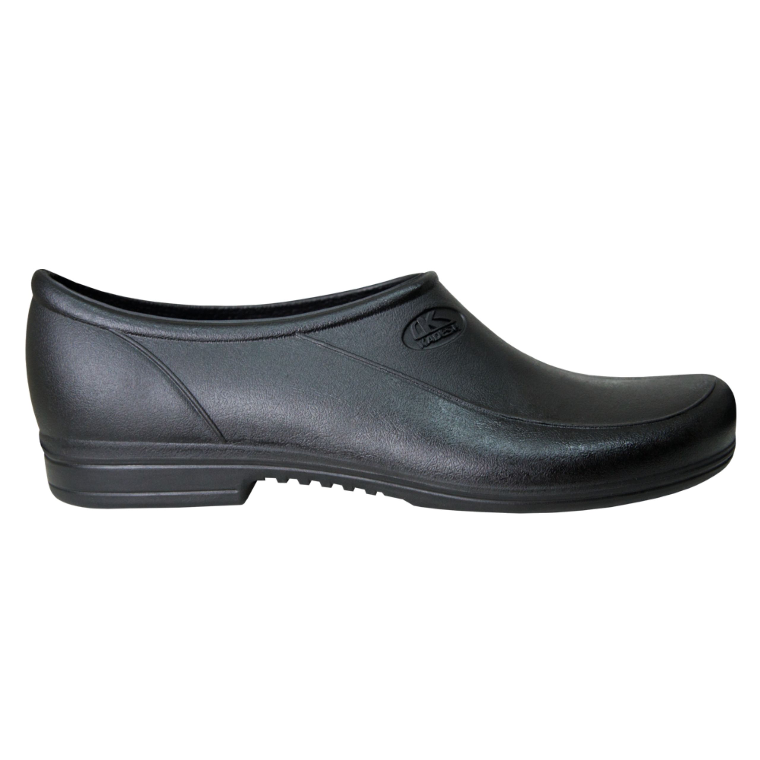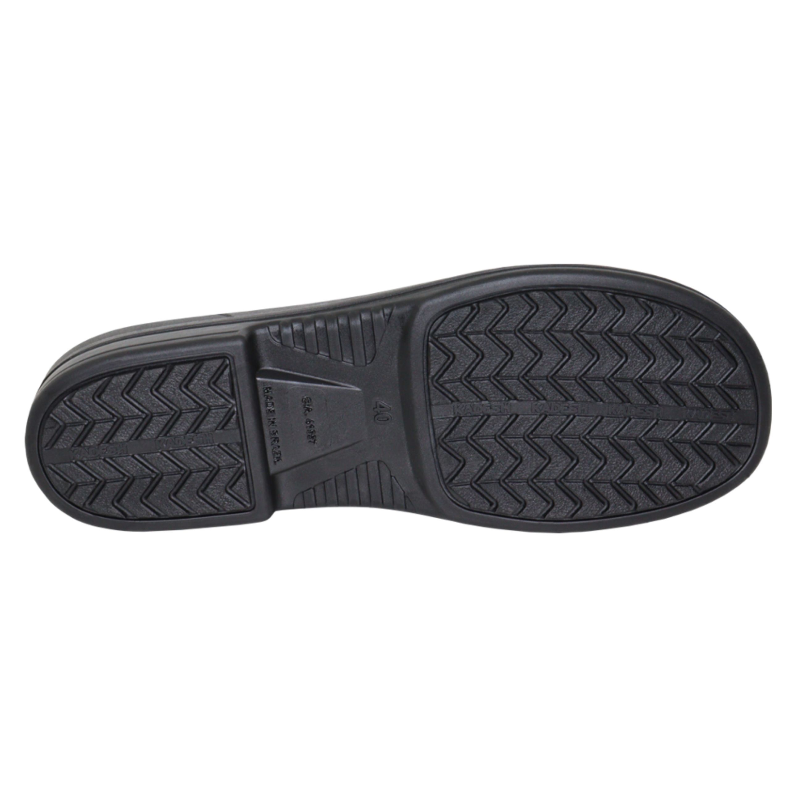 Sapato ocupacional Soft Grip Flex, na cor preta, impermeável, confeccionado em poliuretano (PU) expandido de alta performance com solado antiderrapante. Atende às normas da ABNT NBR ISO.