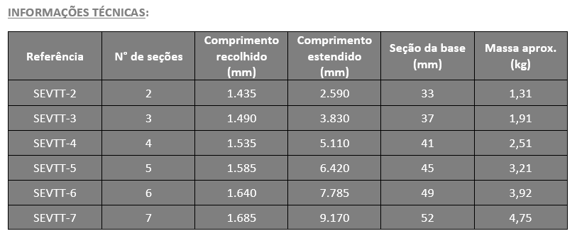 A Vara de manobra telescópica leve perfil triangular da SOLUÇÃO é construída seguindo rigorosos processos de fabricação e ensaio, o que permite garantirmos sua qualidade comprovada pelo atendimento integral dos requisitos da norma ASTM F1826-00.
